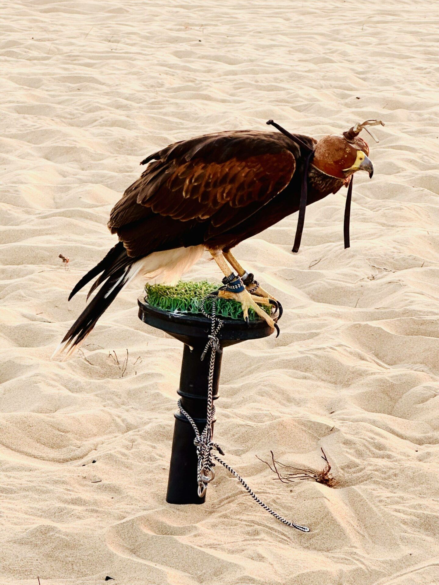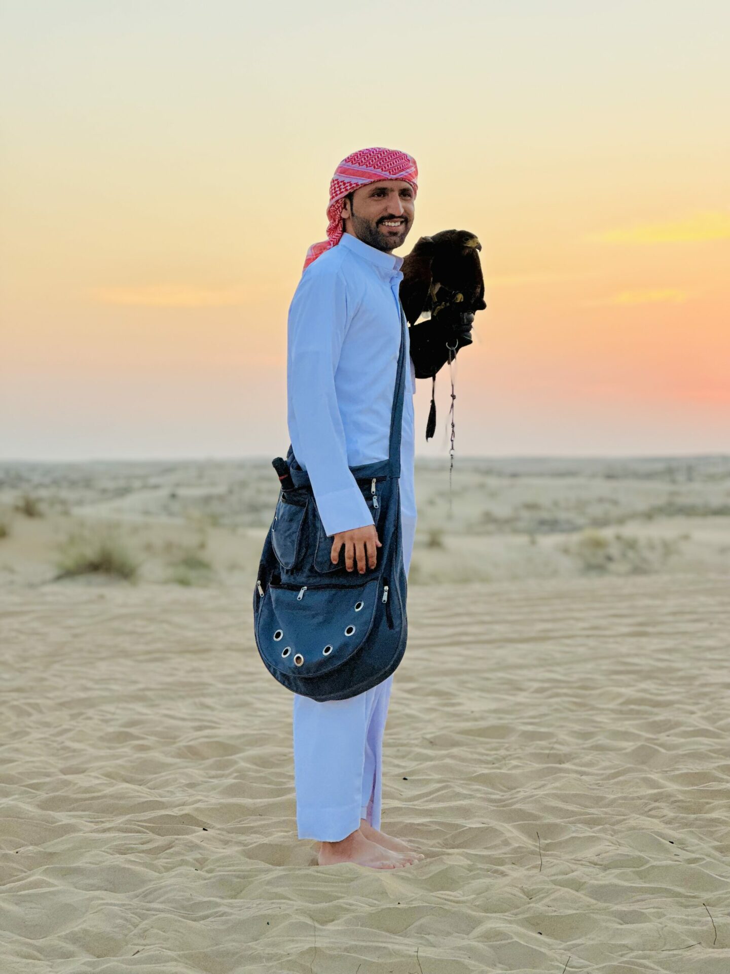Meet and photograph majestic birds of prey. Falcons are a symbol of Emirati heritage. Capture unforgettable moments as you pose with them against the stunning desert background.