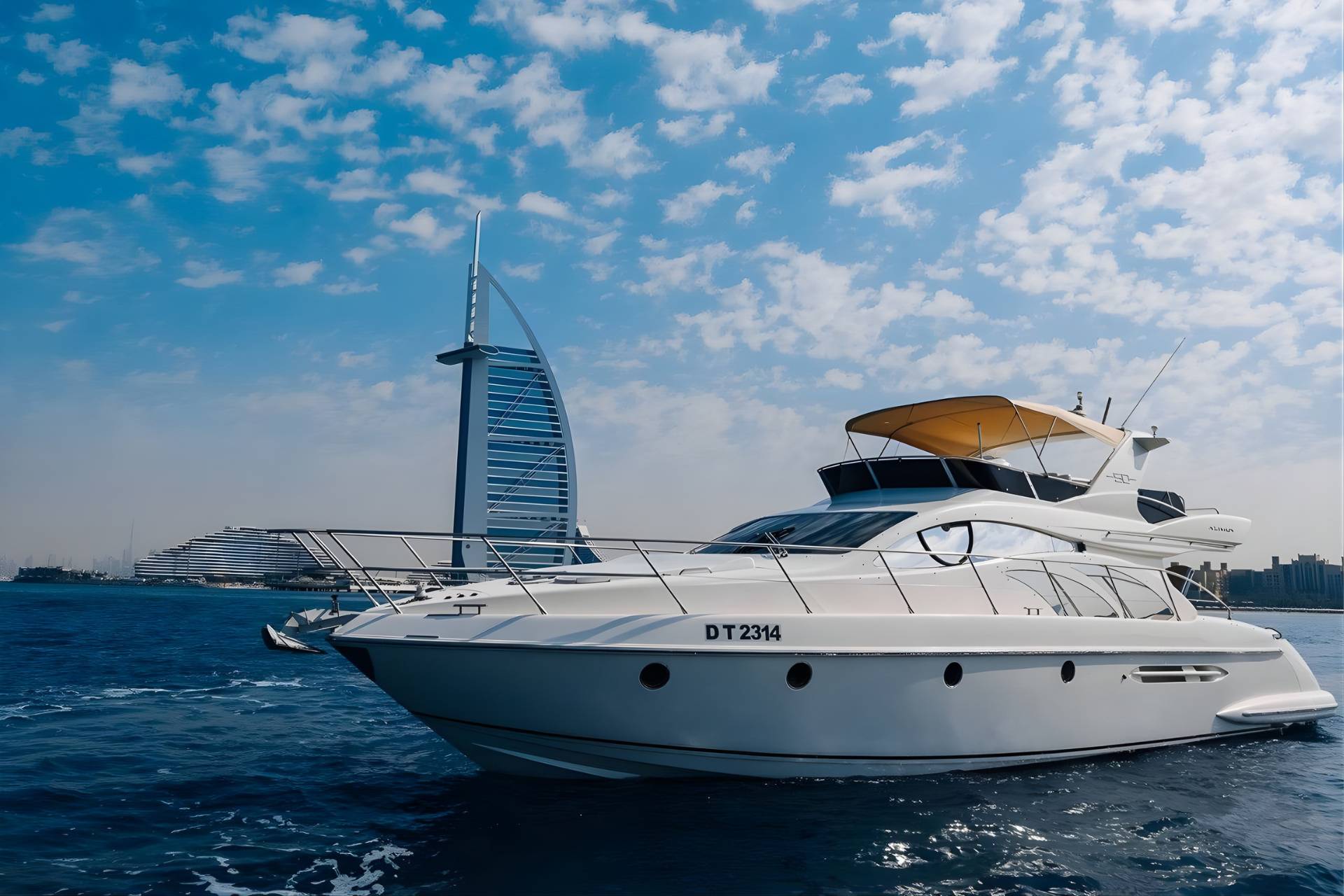 A oferta inclui um cruzeiro de três horas numa rota fixa ao custo de AED 790/h. Se procura um iate maior, quiser personalizar a rota, prolongar a duração ou adicionar mais paragens, a nossa equipa terá todo o gosto em ajudá-lo. Basta entrar em contacto connosco pelo WhatsApp para adaptarmos a experiência às suas necessidades.